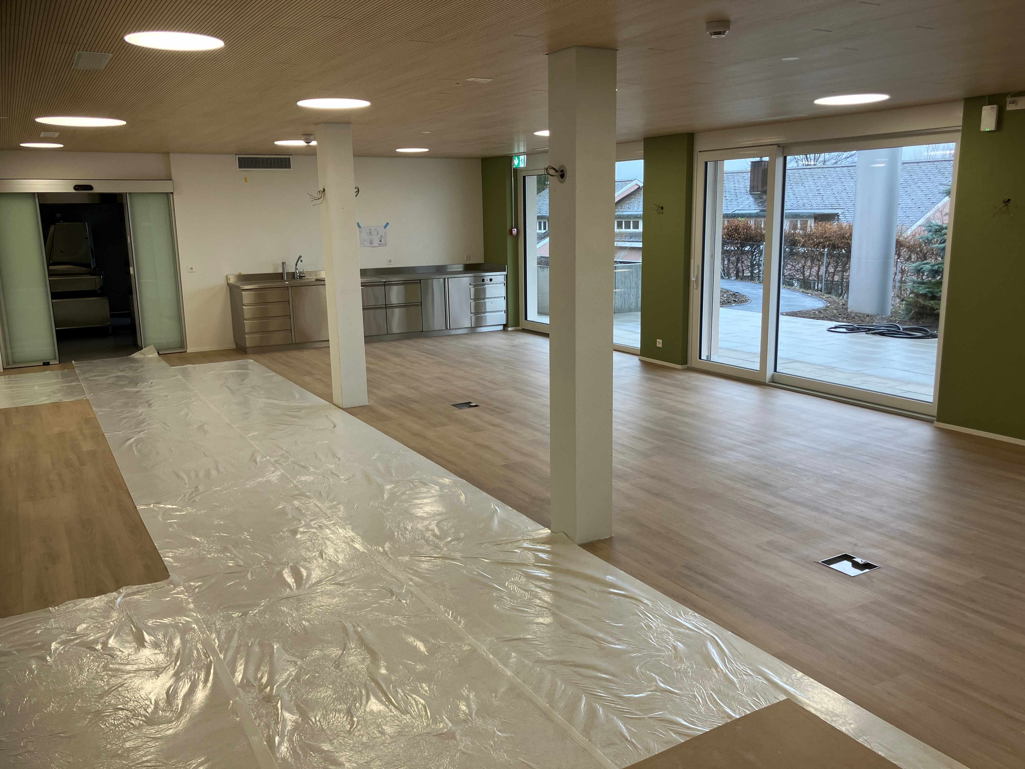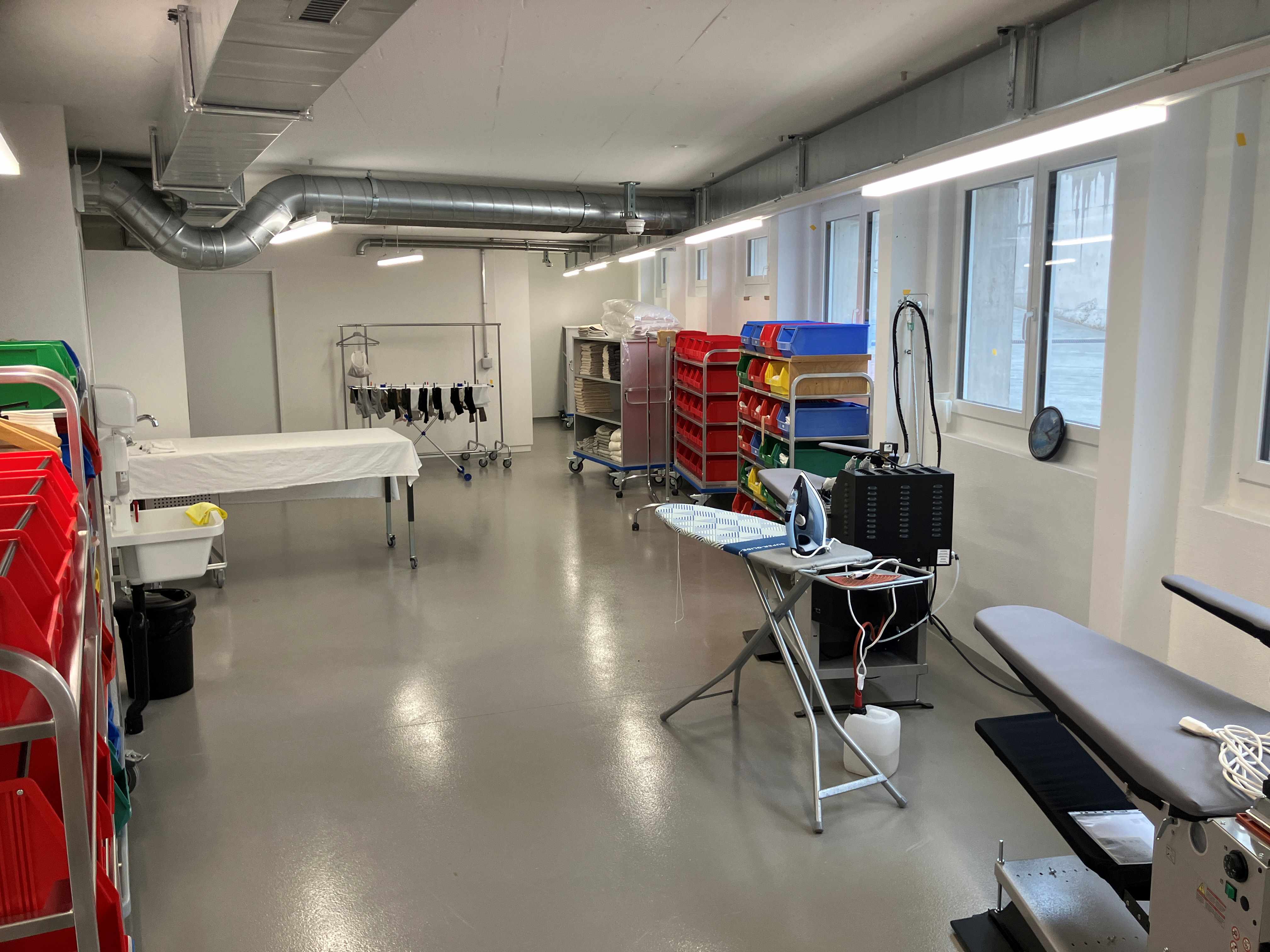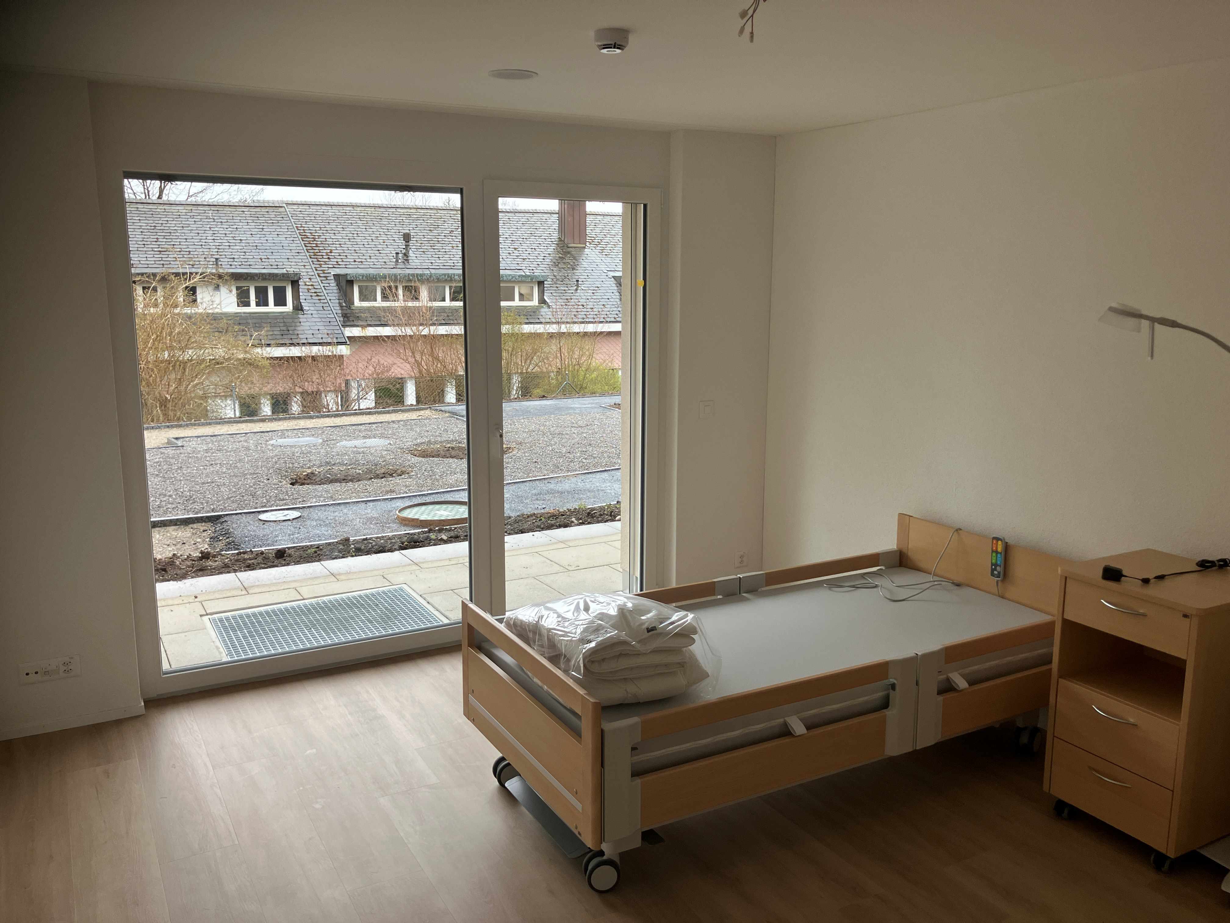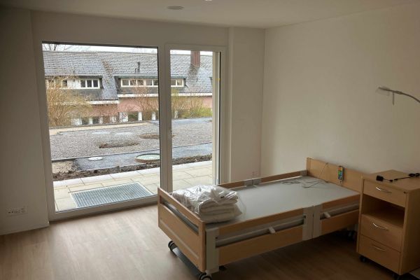 Auch die Pflegeplätze in den unteren zwei Geschossen sind an sich fertig. Die Hauswirtschaft hat die Lingerie schon in Betrieb genommen und alle Wäsche wird schon in den schönen, grosszügigen Räumen gewaschen. Mitarbeiterinnen der Pflege sind daran, das Pflegebüro und Materialräume einzurichten. Pflegebetten und Nachttische sind eingetroffen. Sobald der neue Speisesaal genutzt werden kann, wird die neue Küche in Betrieb genommen. Wir setzen alles daran, ab der zweiten Maiwoche auch diese Räume in Betrieb zu nehmen.